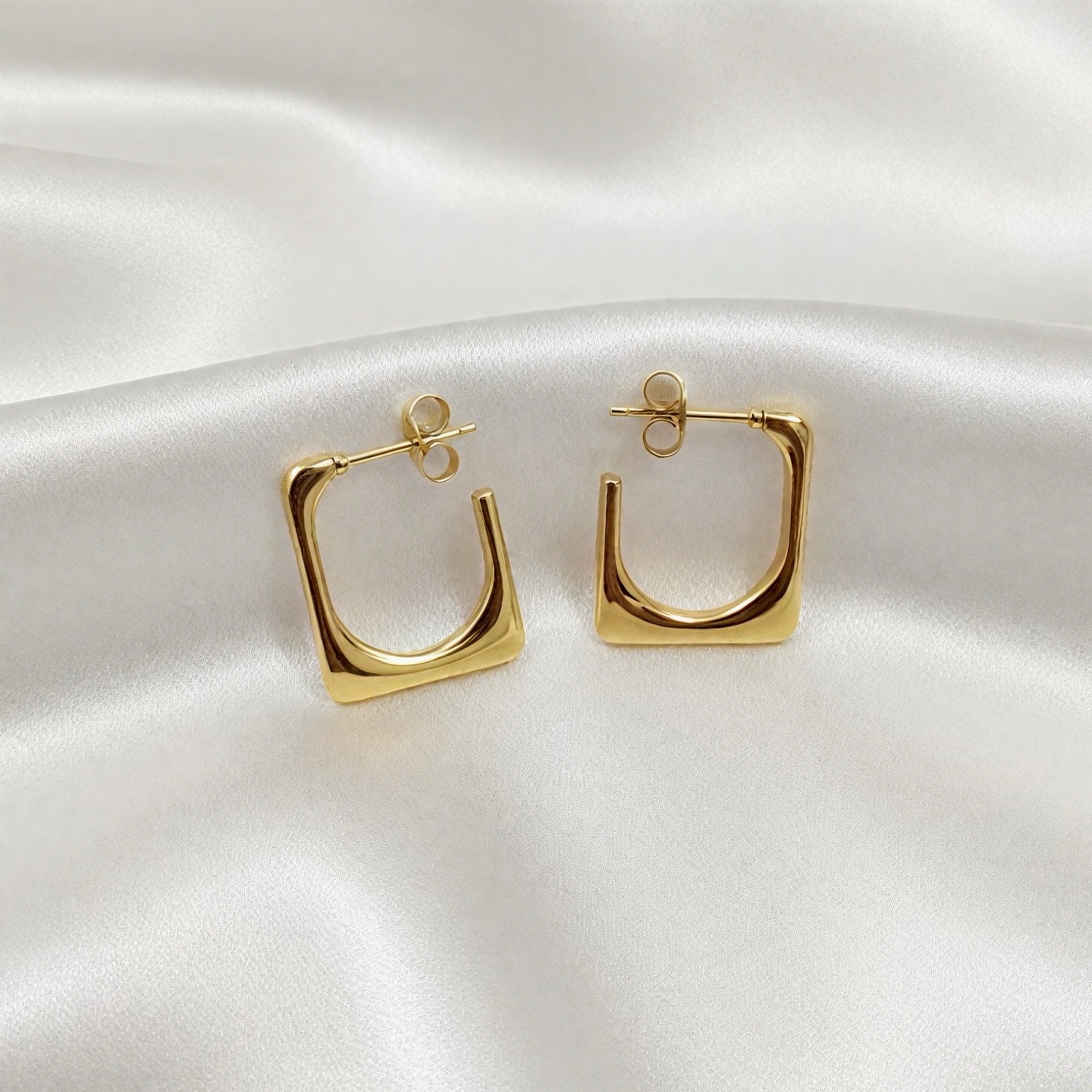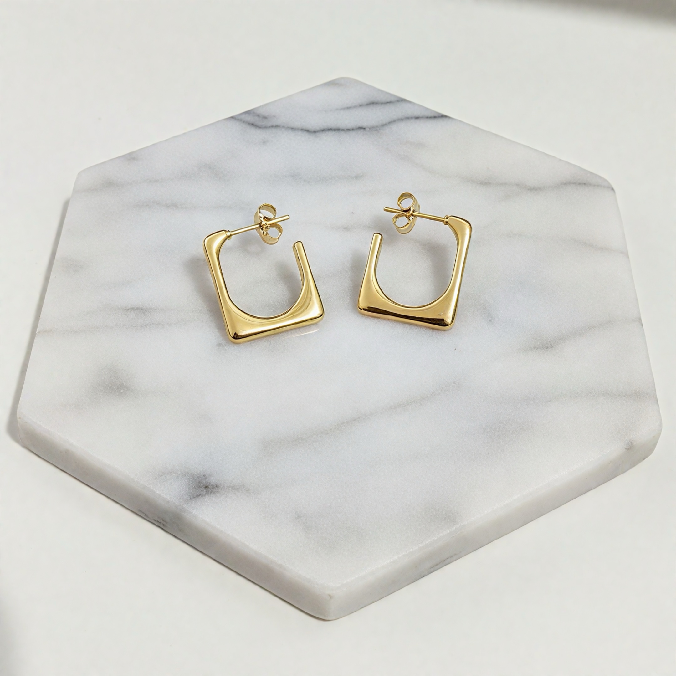 Be the first to review “Modern Square Curve Gold Hoop Earrings”